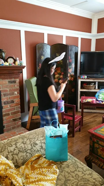 The kids were VERY patient this morning waiting for the three teenagers to get up. We had a late breakfast together. Mom and Dad came over and then they finally got into their baskets and did their egg hunt. Only one egg missing compliments of Esmei. The big kids were good sports about wearing ears and hunting together. We had a big lunch and then most of us went to the Forest Museum to ride the Green Hornet. Lili and Fei chose to stay home and do chores. Which was helpfull but still a bit bittersweet as they outgrow the traditions. When we got home Lili asked for a ride in the convertible. It was sunny so I took the teens for the first top down cruise of the summer. Love. It was a nice, peaceful day. Well....as peaceful as we can manage.