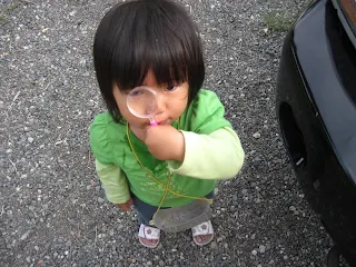 When we saw Mary and Charles recently, Mary told me all signs of babyhood were gone on Jia. Since I still make the bottles, feed the bottles and change diapers, I disagree :) However, there are moments that I have to agree. She looks sooooo grown up on Lili's old scooter!