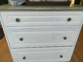 I have a true love hate relationship with our kitchen. There are a lot of changes that I want done. Eric does the cooking, I do the cleaning. We both think we own the space. I think it's possible we bought the house because I liked the kitchen. It was so homey. It smelled of apples. It was my favorite shade of green and golden yellow. It was light and big and white. All good. I soon resented the island in the way all the time and it's cheap and ugly. The melamine is cheap but it's white and bright, in pretty good shape and easy to keep clean. I don't care for flourecent lighting, but taking it down meant dealing with a damaged ceiling and you know if you do one thing it all just runs together into a whole bunch of things. So, we've just lived with the entire room as it was. Jia drawing on the island, almost meant change but Eric found a wonderful product that took sharpie off the drawers. Then last week our light stopped working. Eric had a look and said it was scorched. Yikes. So down it comes and then we discover the original wood ceiling is still there a foot higher. The decision is made to salvage the ceiling and put in giant crown moulding to bridge the gap. The ceiling is down and we discover live knob and tube wiring! No idea where it comes from, where it goes etc. so we have to call an electritian to deal with it again. Third time we've found it live. We were told that the whole house had new wiring. Double yikes. The island is out and we're going to take the big single pane window out and replace it with shelving and a piano window (that we bought at demxx yesterday) and lastly we're going to finally put in the big old white sink that Eric bought me last summer, we found a new tap for the old sink yesterday too. So, not a new kitchen but fixing all of the things about it that don't work for me. Exciting stuff. It's amazing how much better it feels just to have the big ole' island out of there. The kids hated it at first but now they dance around the whole room. It's all good. Oh, and the day the ceiling came down, the washing machine stopped. Eric and I took off to Combs yesterday to look for the piano window and just ignored that we had a dead washer. He's off today to Sears to hunt for a new one. We do a LOT of laundry. Not sure how many days we can survive without one!
