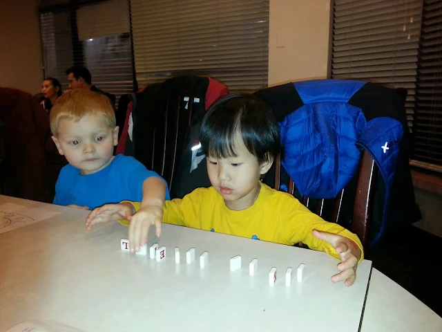 Luk on the other hand wasn't too thrilled with much of the party. He wanted nothing to do with the instructor or what the other kids were doing. I tried to keep him involved but it was hard, he is no where near able to keep up with the kids. Even the younger kids were more able. We truck along thinking he's doing ok and even improving but after today it's fairly obvious we have a really long way to go.