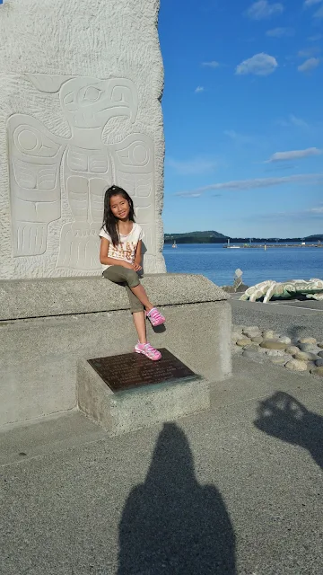 At the Nanaimo park for a picnic dinner and walk. We tried the playground after dinner. Eric went to the car with Luk, the rest of us went to the playground. By the time Eric caught up Kai had taken his shoes off 8 times! Pebbles. Fallen down three times and fallen off a climbing structure. He was in tears from frustration so I declared it time to leave for our walk. Sometimes it just doesn't work. Luk and Jia thankfully took it in stride.