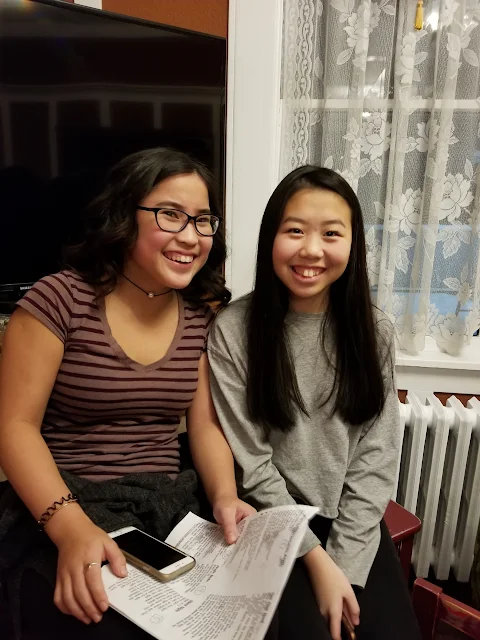 7 families gathered to sing and eat and laugh. We had a great time. Kids had a great time. Even the teens looked like they had a great time. Not enough time to finish any conversations. Now I need to visit all the Moms! It got crazy loud. It was fun to watch the boys running around with Dagen. Luk has declared Dagen his best friend. So cute. In amongst the fun Luk lost a tooth. The fairy remembered hours after getting to bed. We got the house cleaner than normal for the party. Eric even cleared a space in the basement so kids could run around and play with balls and hockey sticks. Now we move onto Christmas Eve. Mom and Dad are coming for dinner. Jia is really, really, really ready to decorate our packaged gingerbread village set. We need a trip to Superstore. I'm sort of looking forward to it.
