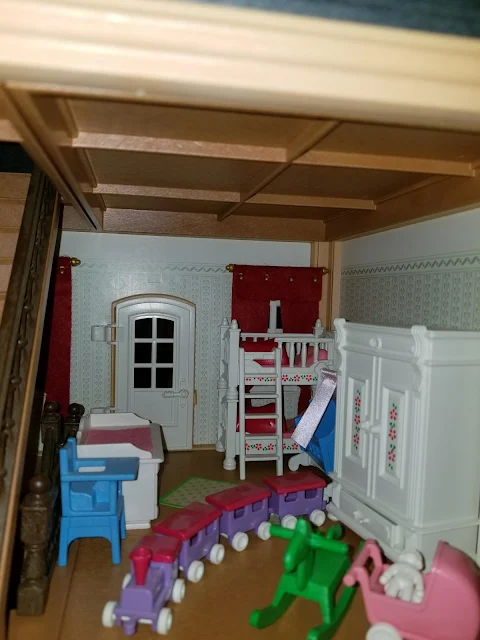 Tonight Jia asked for the playmobile house. We spent an hour decorating and cleaning. She wants me to play in the house now but she wouldn't let me be people and moved horses into the house so I'm out of there. Too much for me even in pretend land. The house and contents are sooo incredibly cute. Gramma did a great job collecting.