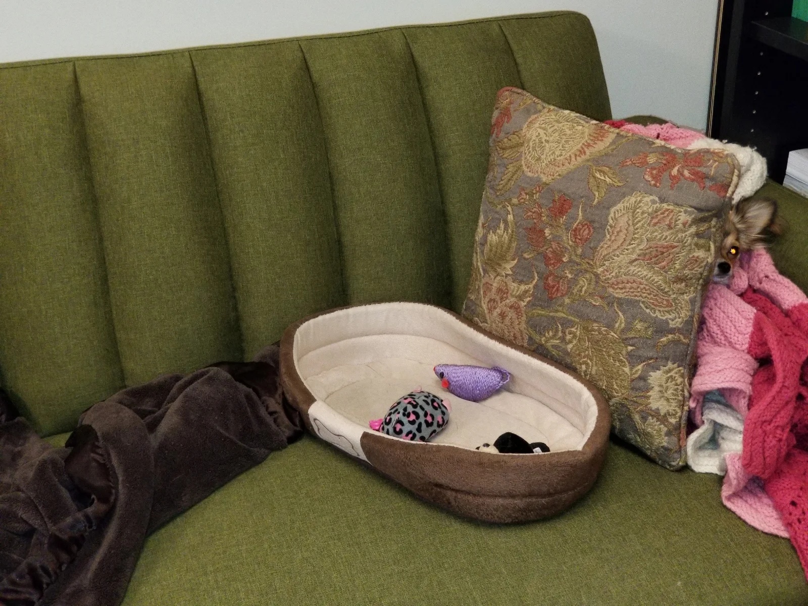 Ready to go home from work and couldn't find Sasha who is usually in her little bed.