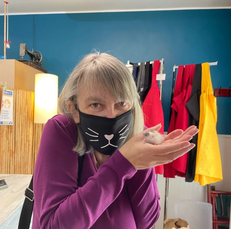 The seamstresses daughter, 8 year old Olivia has pet mice, I told her weeks ago how much I love mice and that I would love to meet hers. She was standing with Pirate Buttercup waiting for us today. I was pretty excited about my playdate with a mouse. I'm not kidding when I say I don't get out much!