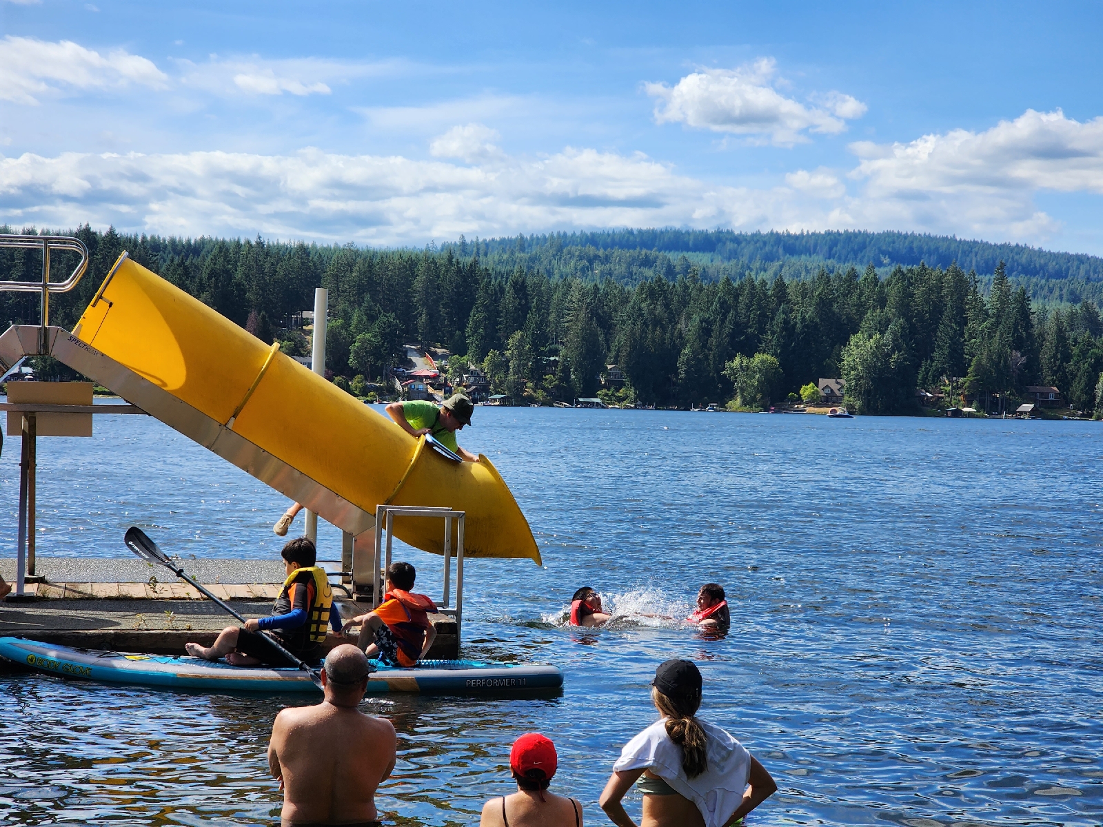 There was some gagging and sputtering and he clung so tight to Josh that I'm not really sure how he got him to shore. There was a lot of clapping and shouting from other families. That was pretty cool.