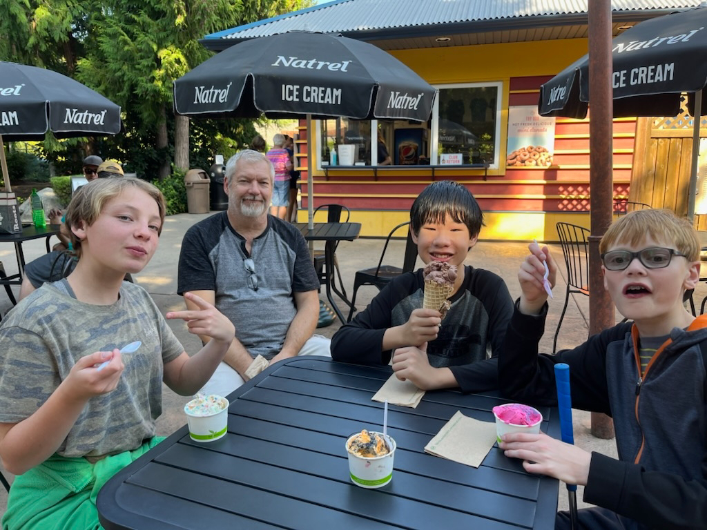 Ken and Eric took these 3 to fun golf. Kai stayed with me, Shannon and the 6 dogs.
