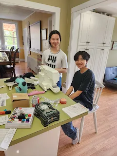 May came for the day and brought her sewing machine. Which meant they needed a trip to town for fabric. Then we set up our sewing machine for Jia. Then the whole day was spent intensely creating. May and Jia style with lots and lots of bickering and excessive energy. Grin. Love these two together.
