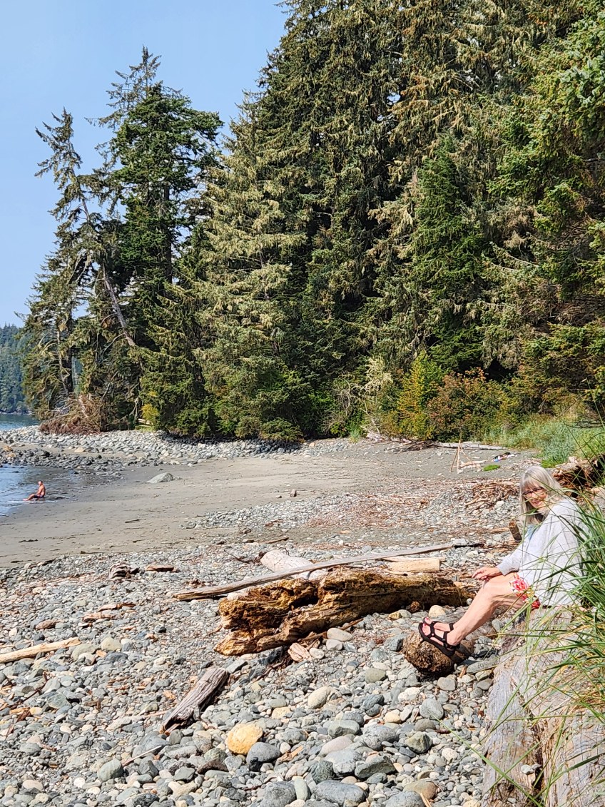 I had pitch on three fingers so was basically imobilized. Crippled by the ick and stench. Eric brought me wet sand and I scrubbed for a half hour until I could function again.
