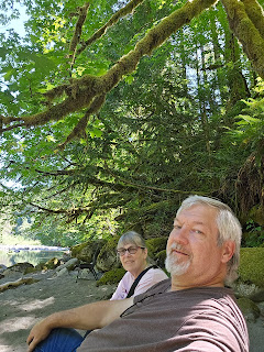 Our river spot was amazing. A bit of a hike in. Eric had to help me. We had a sandy beach to ourselves, lots of shade and the water looked deep enough to swim in.